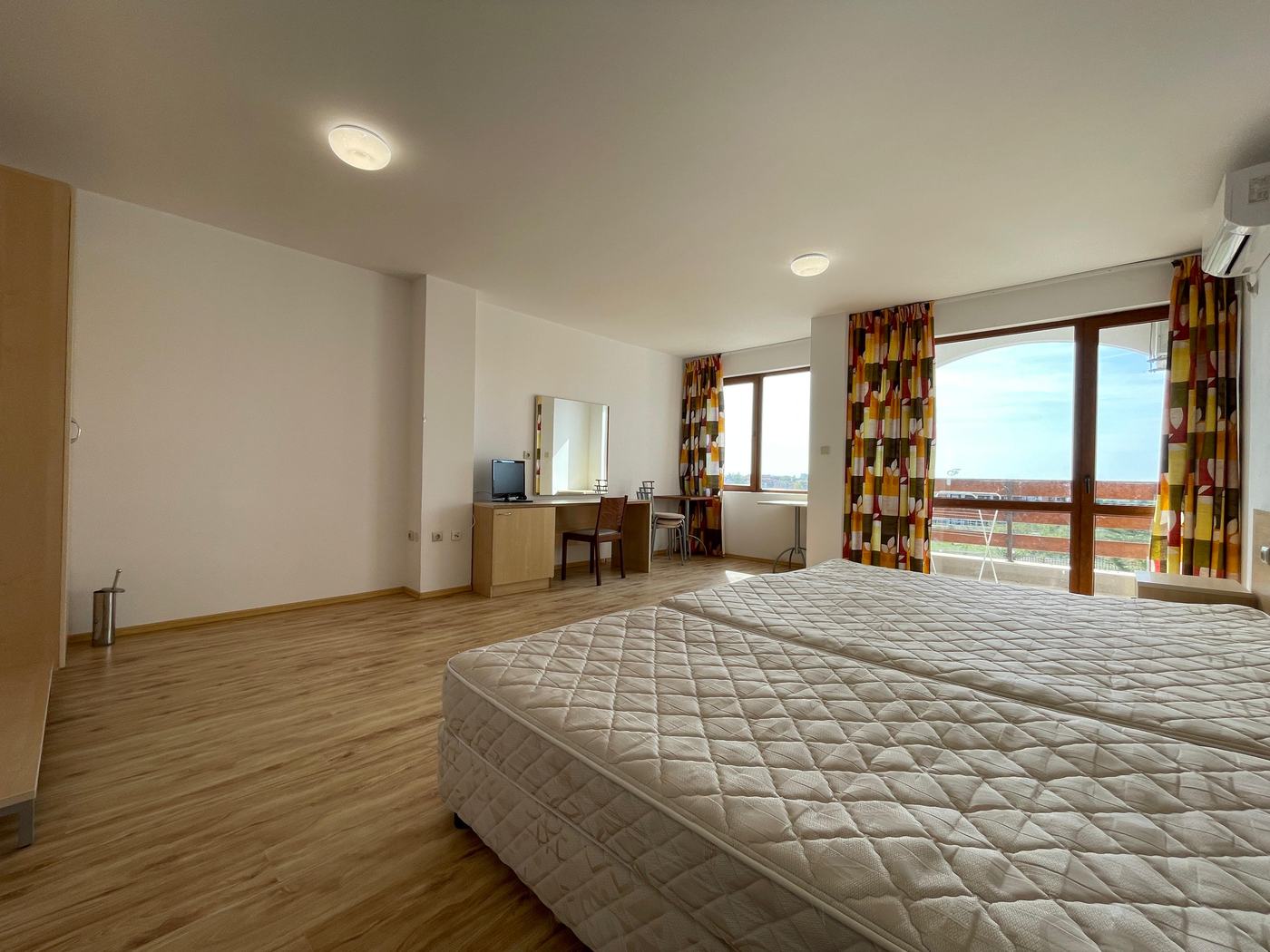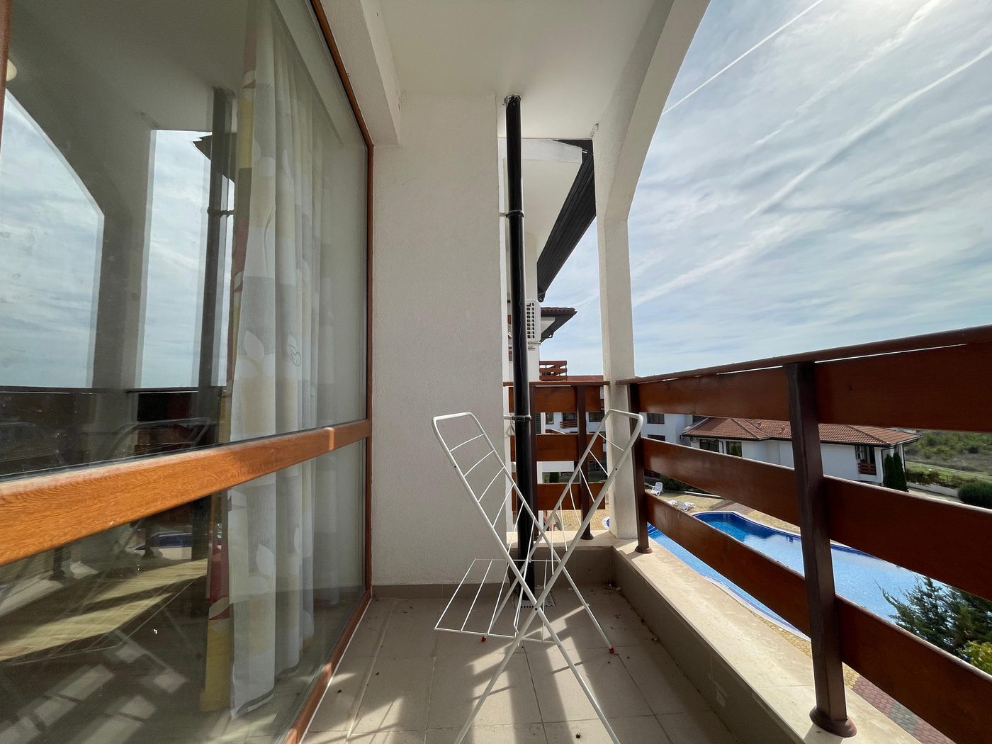ACT 16: vollständig baugenehmigt, technisch abgenommen, bezugsbereit, Übergabe nach Vertragsabschluss. Kein Bauträgerrisiko. Eigentumsübertragung beim bulgarischen Notar – Kauf per Vollmacht möglich. Jährliche Wartungspauschale 364 € deckt Gemeinschaftsflächen, Pool und Anlagenverwaltung.